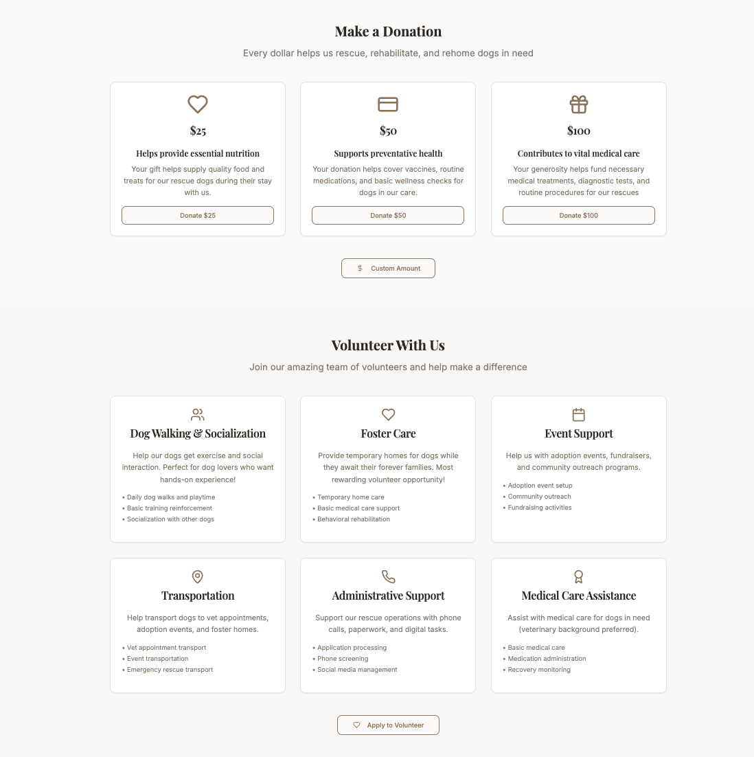 Wild Horizon Rescue is a full-stack web platform designed to help dog rescues scale their operations without scaling their overhead. Built with real rescue operators in mind, the app streamlines everything from dog browsing to adoption applications, volunteer management, and donations all in one secure, intuitive system.